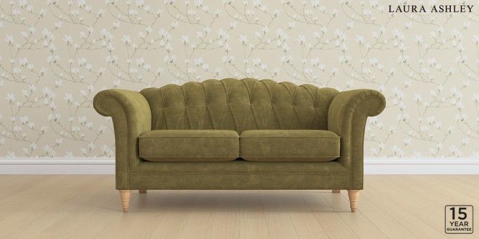 6.12.1 Buy Gloucester Button Back by Laura Ashley 2 Seater Sofa Alwyn Velvet Olive Green Low Turned - Light Oak from the Next UK online shop Click here to use our accessible website