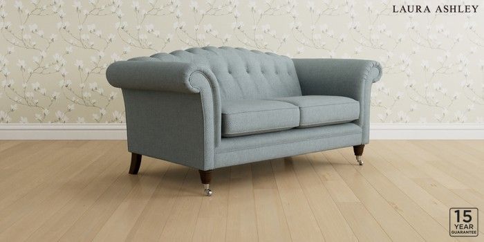 6.12.13 Buy Gloucester Button Back by Laura Ashley 2 Seater Sofa Anneliese Seaspray Blue Low Chrome Castor - Chestnut from the Next UK online shop Click here to use our accessible website