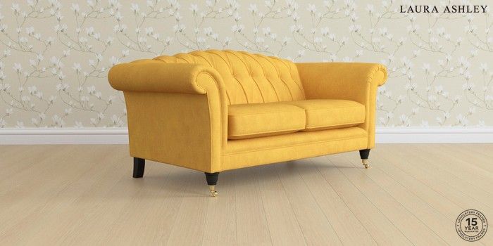 6.12.1 Buy Gloucester Button Back by Laura Ashley 2 Seater Sofa Bainton Ochre Yellow Low Brass Castor - Black from the Next UK online shop Click here to use our accessible website