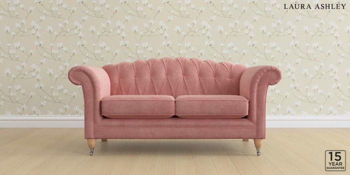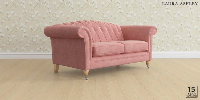 6.12.13 Buy Gloucester Button Back by Laura Ashley 2 Seater Sofa Bainton Old Rose Pink Low Chrome Castor - Light Oak from the Next UK online shop Click here to use our accessible website