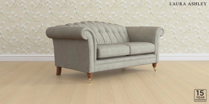 6.12.1 Buy Gloucester Button Back by Laura Ashley 2 Seater Sofa Bainton Pale Steel Grey Low Brass Castor - Teak from the Next UK online shop Click here to use our accessible website
