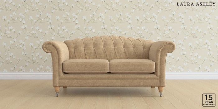 6.12.1 Buy Gloucester Button Back by Laura Ashley 2 Seater Sofa Edwin Chenille Gold Natural Low Chrome Castor - Light Oak from the Next UK online shop Click here to use our accessible website