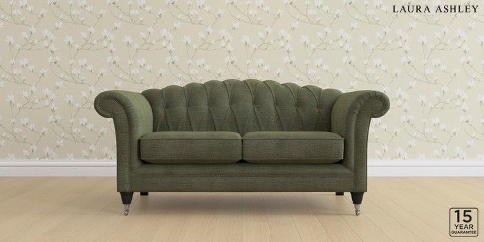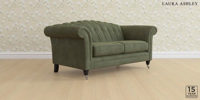 6.12.13 Buy Gloucester Button Back by Laura Ashley 2 Seater Sofa Edwin Chenille Hedgerow Green Low Chrome Castor - Black from the Next UK online shop Click here to use our accessible website