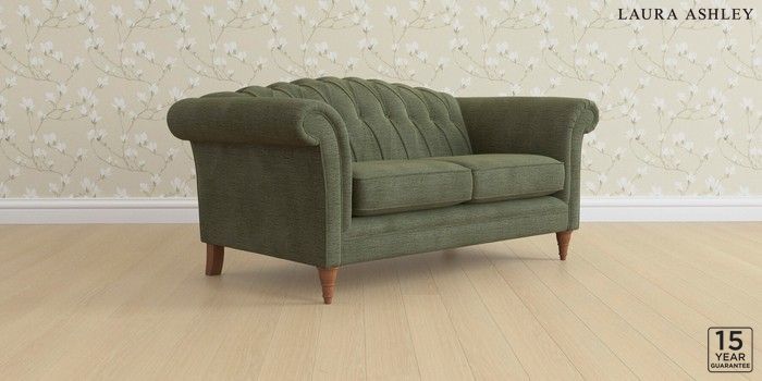 6.12.13 Buy Gloucester Button Back by Laura Ashley 2 Seater Sofa Edwin Chenille Hedgerow Green Low Turned - Teak from the Next UK online shop Click here to use our accessible website