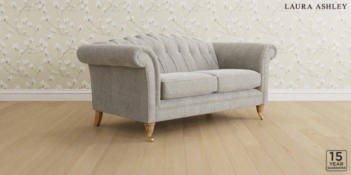 6.12.1 Buy Gloucester Button Back by Laura Ashley 2 Seater Sofa Edwin Chenille Silver Grey Low Brass Castor - Light Oak from the Next UK online shop Click here to use our accessible website