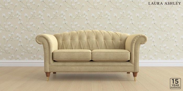 6.12.13 Buy Gloucester Button Back by Laura Ashley 2 Seater Sofa Edwin Chenille Truffle Natural Low Brass Castor - Teak from the Next UK online shop Click here to use our accessible website