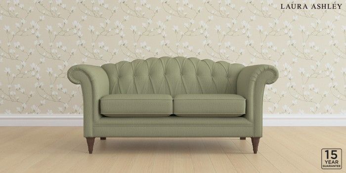 6.12.1 Buy Gloucester Button Back by Laura Ashley 2 Seater Sofa Edwin Herringbone Hedgerow Green Low Turned - Chestnut from the Next UK online shop Click here to use our accessible website