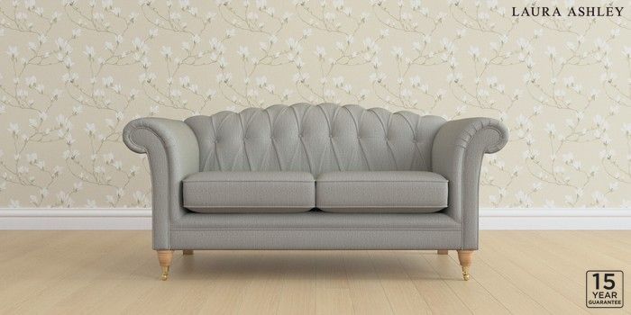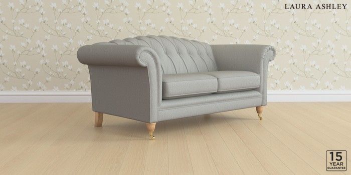 6.12.1 Buy Gloucester Button Back by Laura Ashley 2 Seater Sofa Edwin Herringbone Pale Steel Grey Low Brass Castor - Light Oak from the Next UK online shop Click here to use our accessible website