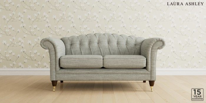 6.12.13 Buy Gloucester Button Back by Laura Ashley 2 Seater Sofa Harley Dove Grey Low Brass Castor - Chestnut from the Next UK online shop Click here to use our accessible website