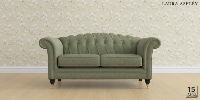 6.12.1 Buy Gloucester Button Back by Laura Ashley 2 Seater Sofa Harley Moss Green Low Brass Castor - Black from the Next UK online shop Click here to use our accessible website