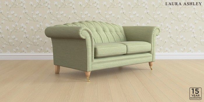 6.12.13 Buy Gloucester Button Back by Laura Ashley 2 Seater Sofa Kinsham Hedgerow Green Low Brass Castor - Light Oak from the Next UK online shop Click here to use our accessible website