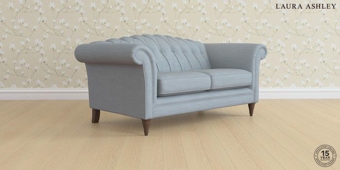 6.12.1 Buy Gloucester Button Back by Laura Ashley 2 Seater Sofa Kinsham Seaspray Blue Low Turned - Chestnut from the Next UK online shop Click here to use our accessible website