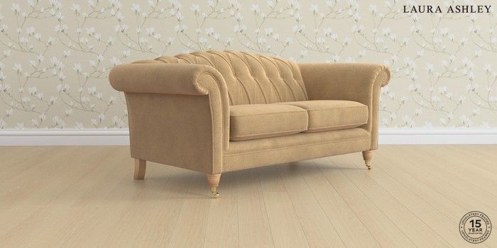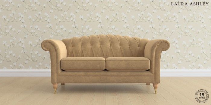 6.12.1 Buy Gloucester Button Back by Laura Ashley 2 Seater Sofa Lundar Chenille Caramel Natural Low Brass Castor - Light Oak from the Next UK online shop Click here to use our accessible website