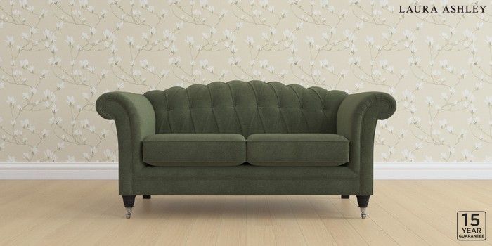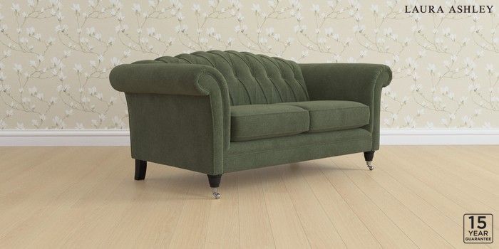 6.12.13 Buy Gloucester Button Back by Laura Ashley 2 Seater Sofa Lundar Chenille Ivy Green Low Chrome Castor - Black from the Next UK online shop Click here to use our accessible website