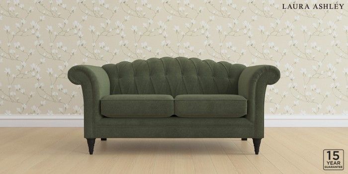 6.12.13 Buy Gloucester Button Back by Laura Ashley 2 Seater Sofa Lundar Chenille Ivy Green Low Turned - Black from the Next UK online shop Click here to use our accessible website