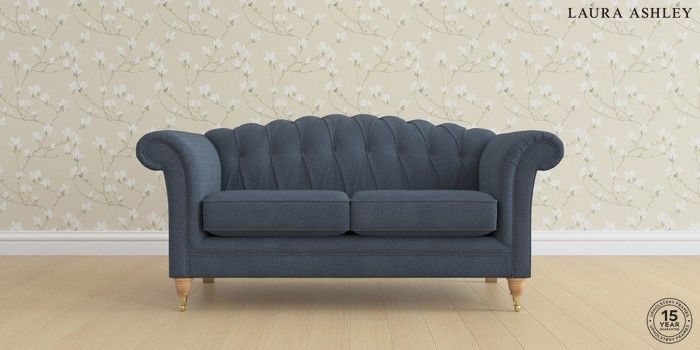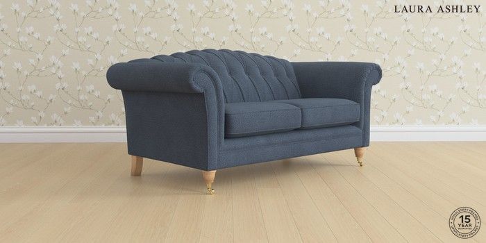 6.12.1 Buy Gloucester Button Back by Laura Ashley 2 Seater Sofa Lundar Chenille Navy Blue Low Brass Castor - Light Oak from the Next UK online shop Click here to use our accessible website
