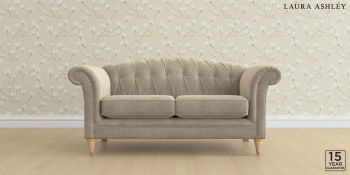 6.12.13 Buy Gloucester Button Back by Laura Ashley 2 Seater Sofa Lundar Chenille Truffle Natural Low Turned - Light Oak from the Next UK online shop Click here to use our accessible website