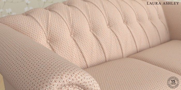 6.12.1 Buy Gloucester Button Back by Laura Ashley 2 Seater Sofa Melbreak Geo Chalk Pink Low Brass Castor - Chestnut from the Next UK online shop Click here to use our accessible website