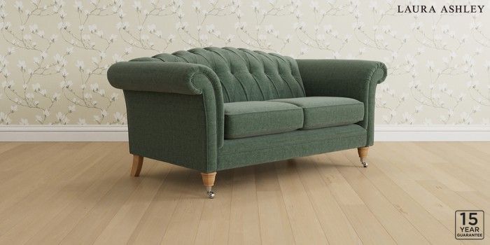 6.12.1 Buy Gloucester Button Back by Laura Ashley 2 Seater Sofa Nantmor Fern Green Low Chrome Castor - Light Oak from the Next UK online shop Click here to use our accessible website