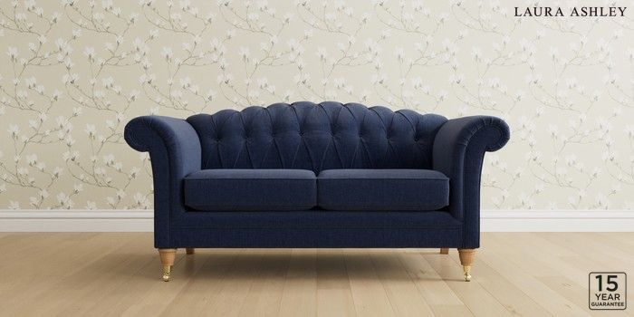 6.12.13 Buy Gloucester Button Back by Laura Ashley 2 Seater Sofa Nantmor Midnight Navy Low Brass Castor - Light Oak from the Next UK online shop Click here to use our accessible website
