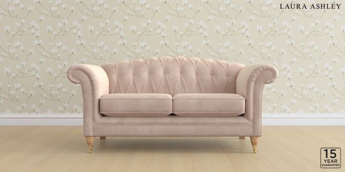 6.12.13 Buy Gloucester Button Back by Laura Ashley 2 Seater Sofa Orla Chalk Pink Low Brass Castor - Light Oak from the Next UK online shop Click here to use our accessible website