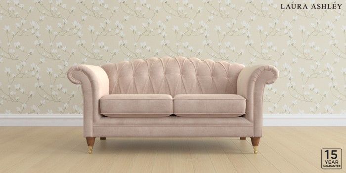 6.12.13 Buy Gloucester Button Back by Laura Ashley 2 Seater Sofa Orla Chalk Pink Low Brass Castor - Teak from the Next UK online shop Click here to use our accessible website