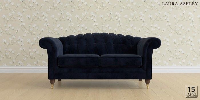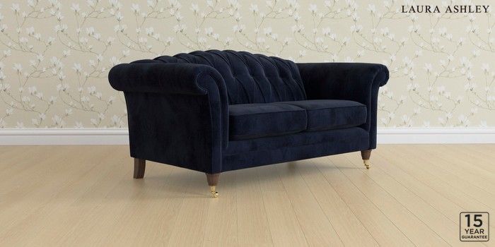 6.12.13 Buy Gloucester Button Back by Laura Ashley 2 Seater Sofa Orla Midnight Navy Low Brass Castor - Chestnut from the Next UK online shop Click here to use our accessible website