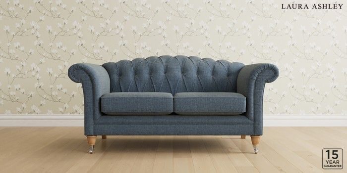 6.12.1 Buy Gloucester Button Back by Laura Ashley 2 Seater Sofa Orla Seaspray Blue Low Chrome Castor - Light Oak from the Next UK online shop Click here to use our accessible website