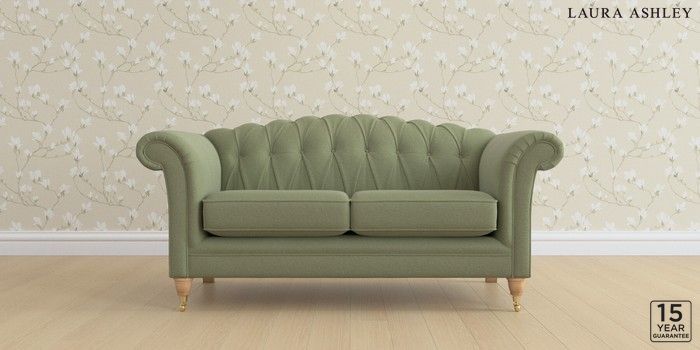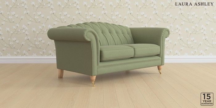 6.12.13 Buy Gloucester Button Back by Laura Ashley 2 Seater Sofa Peyton Hedgerow Green Low Brass Castor - Light Oak from the Next UK online shop Click here to use our accessible website