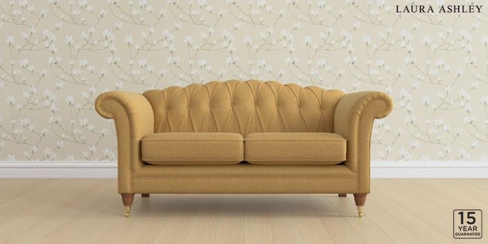 6.12.13 Buy Gloucester Button Back by Laura Ashley 2 Seater Sofa Peyton Ochre Yellow Low Brass Castor - Teak from the Next UK online shop Click here to use our accessible website