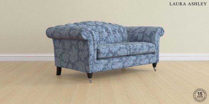 7.2.6 Buy Gloucester Button Back by Laura Ashley 2 Seater Sofa Tamara Dusky Seaspray Blue Low Chrome Castor - Black from the Next UK online shop Click here to use our accessible website