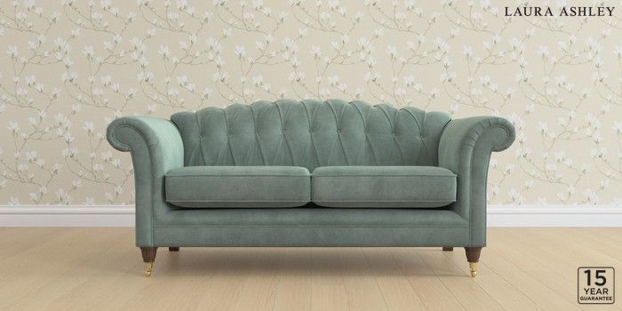 6.12.13 Buy Gloucester Button Back by Laura Ashley 3 Seater Small Sofa Ailsworth Fern Green Low Brass Castor - Chestnut from the Next UK online shop Click here to use our accessible website