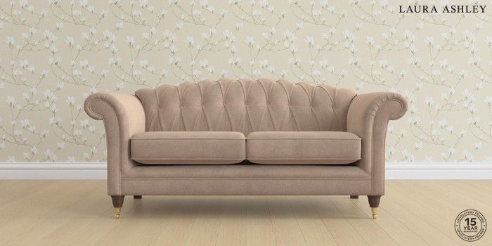 6.12.1 Buy Gloucester Button Back by Laura Ashley 3 Seater Small Sofa Ailsworth Mink Natural Low Brass Castor - Chestnut from the Next UK online shop Click here to use our accessible website