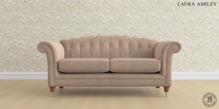 6.12.1 Buy Gloucester Button Back by Laura Ashley 3 Seater Small Sofa Ailsworth Mink Natural Low Brass Castor - Teak from the Next UK online shop Click here to use our accessible website