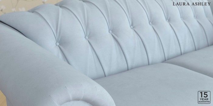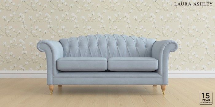 6.12.13 Buy Gloucester Button Back by Laura Ashley 3 Seater Small Sofa Ailsworth Newport Blue Low Brass Castor - Light Oak from the Next UK online shop Click here to use our accessible website