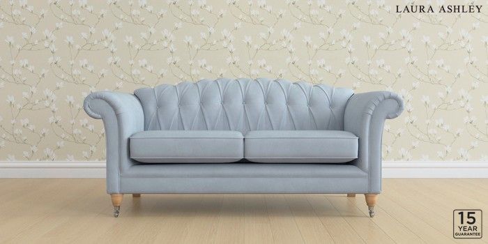 6.12.13 Buy Gloucester Button Back by Laura Ashley 3 Seater Small Sofa Ailsworth Newport Blue Low Chrome Castor - Light Oak from the Next UK online shop Click here to use our accessible website