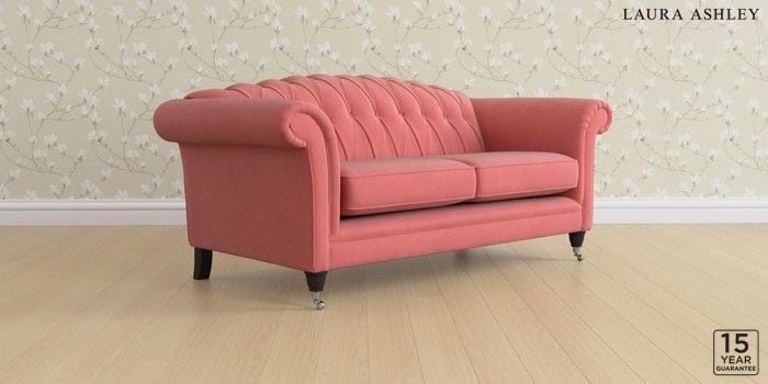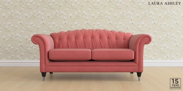 6.12.13 Buy Gloucester Button Back by Laura Ashley 3 Seater Small Sofa Ailsworth Old Rose Pink Low Chrome Castor - Black from the Next UK online shop Click here to use our accessible website
