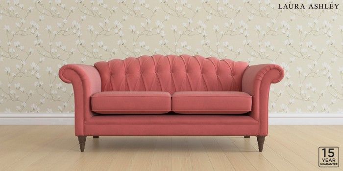 6.12.13 Buy Gloucester Button Back by Laura Ashley 3 Seater Small Sofa Ailsworth Old Rose Pink Low Turned - Chestnut from the Next UK online shop Click here to use our accessible website