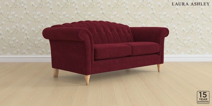 7.0.3 Buy Gloucester Button Back by Laura Ashley 3 Seater Small Sofa Alwyn Velvet Burgundy Red Low Turned - Light Oak from the Next UK online shop Click here to use our accessible website