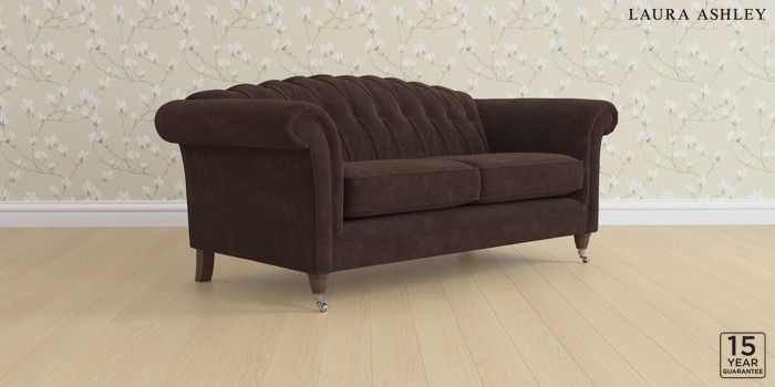 7.0.3 Buy Gloucester Button Back by Laura Ashley 3 Seater Small Sofa Alwyn Velvet Chocolate Brown Low Chrome Castor - Chestnut from the Next UK online shop Click here to use our accessible website