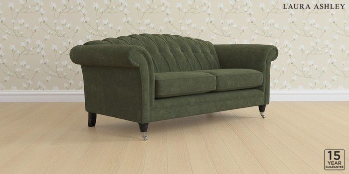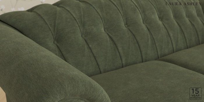6.12.1 Buy Gloucester Button Back by Laura Ashley 3 Seater Small Sofa Alwyn Velvet Ivy Green Low Chrome Castor - Black from the Next UK online shop Click here to use our accessible website