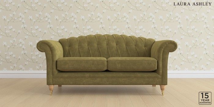 6.12.1 Buy Gloucester Button Back by Laura Ashley 3 Seater Small Sofa Alwyn Velvet Olive Green Low Brass Castor - Light Oak from the Next UK online shop Click here to use our accessible website