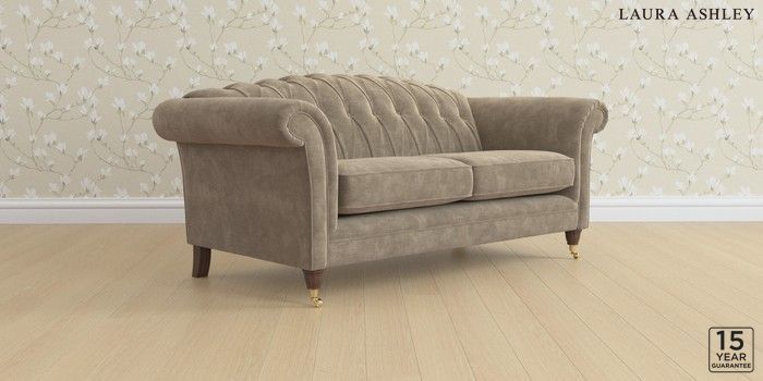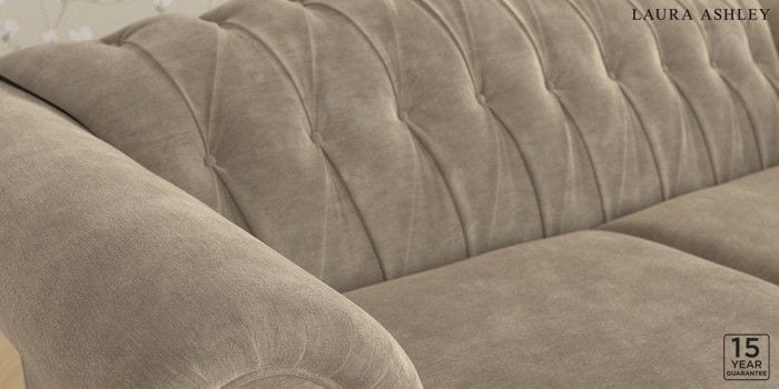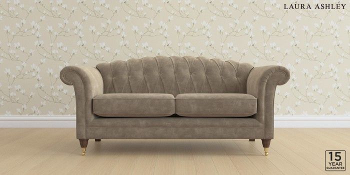 7.0.3 Buy Gloucester Button Back by Laura Ashley 3 Seater Small Sofa Alwyn Velvet Truffle Natural Low Brass Castor - Chestnut from the Next UK online shop Click here to use our accessible website