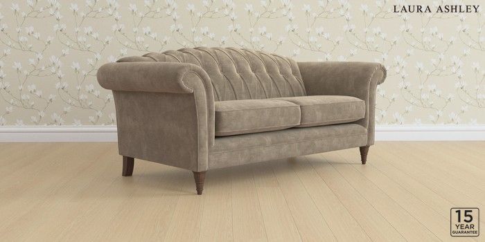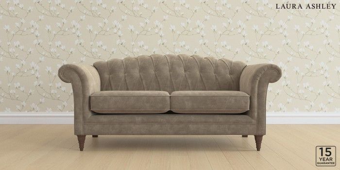 6.12.13 Buy Gloucester Button Back by Laura Ashley 3 Seater Small Sofa Alwyn Velvet Truffle Natural Low Turned - Chestnut from the Next UK online shop Click here to use our accessible website