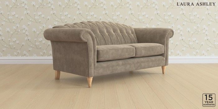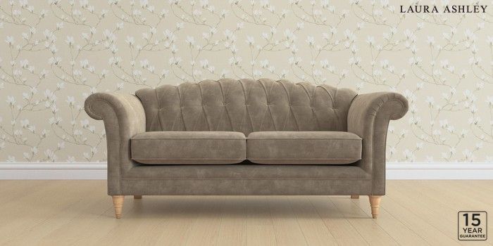 6.12.13 Buy Gloucester Button Back by Laura Ashley 3 Seater Small Sofa Alwyn Velvet Truffle Natural Low Turned - Light Oak from the Next UK online shop Click here to use our accessible website