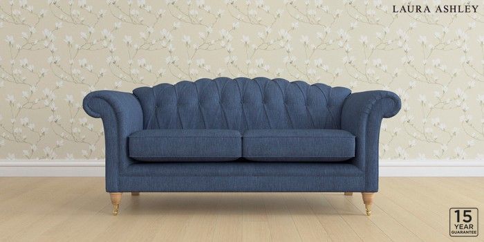 6.12.13 Buy Gloucester Button Back by Laura Ashley 3 Seater Small Sofa Bainton Midnight Navy Low Brass Castor - Light Oak from the Next UK online shop Click here to use our accessible website