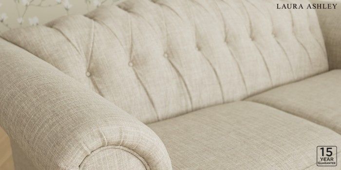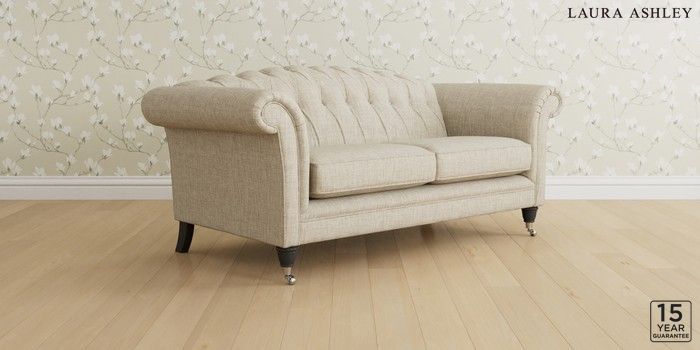 6.12.13 Buy Gloucester Button Back by Laura Ashley 3 Seater Small Sofa Bainton Natural Low Chrome Castor - Black from the Next UK online shop Click here to use our accessible website
