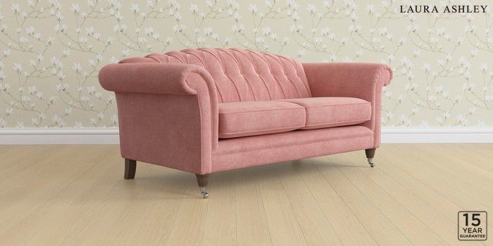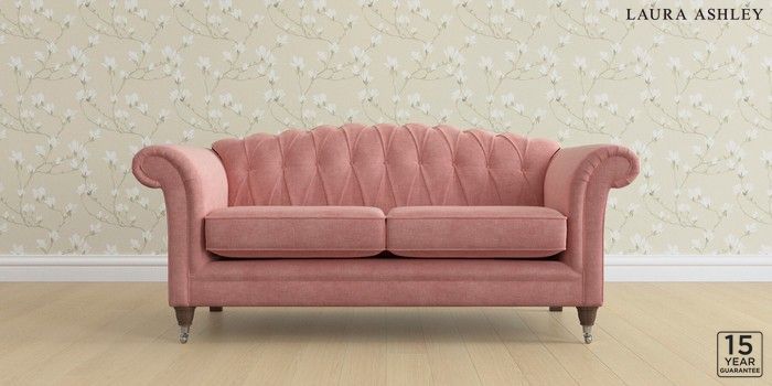 6.12.13 Buy Gloucester Button Back by Laura Ashley 3 Seater Small Sofa Bainton Old Rose Pink Low Chrome Castor - Chestnut from the Next UK online shop Click here to use our accessible website