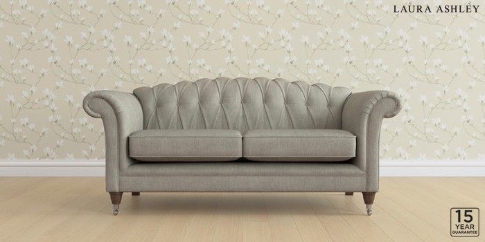 7.0.3 Buy Gloucester Button Back by Laura Ashley 3 Seater Small Sofa Bainton Pale Steel Grey Low Chrome Castor - Chestnut from the Next UK online shop Click here to use our accessible website