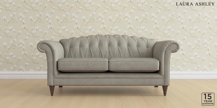 6.12.13 Buy Gloucester Button Back by Laura Ashley 3 Seater Small Sofa Bainton Pale Steel Grey Low Turned - Chestnut from the Next UK online shop Click here to use our accessible website